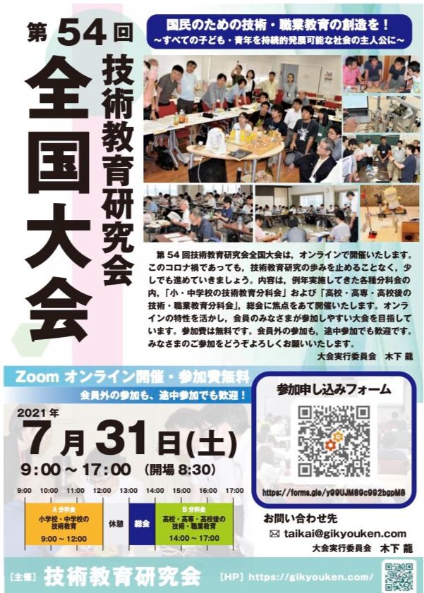 【技術教育研究会第54回全国大会(オンライン開催)のご案内】